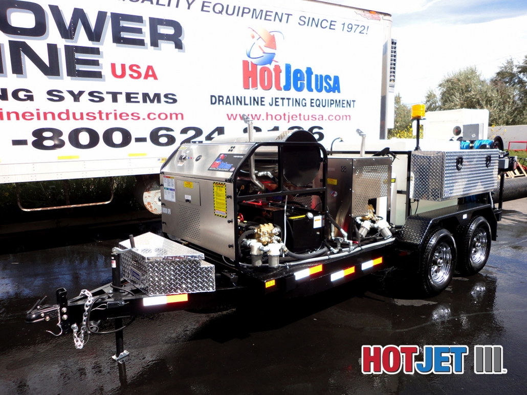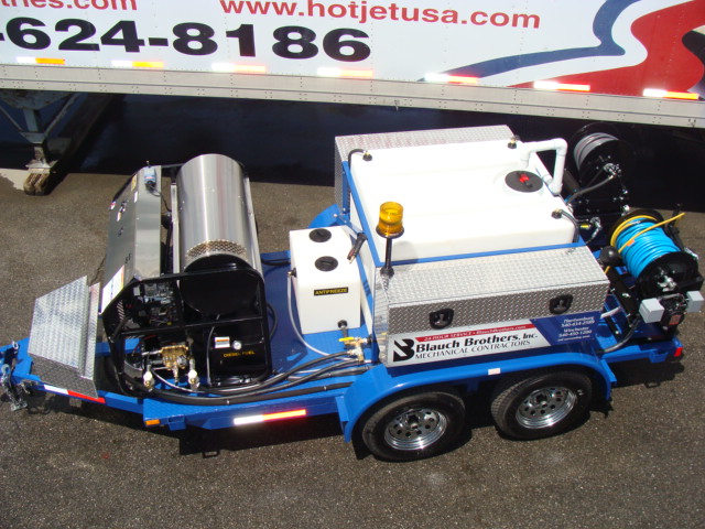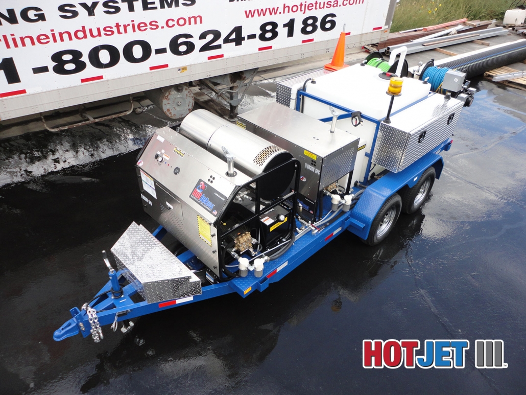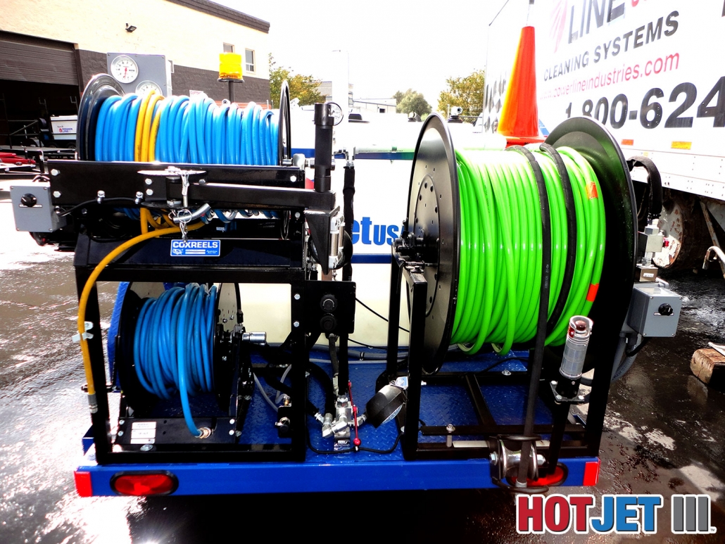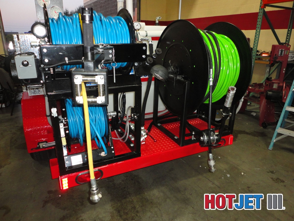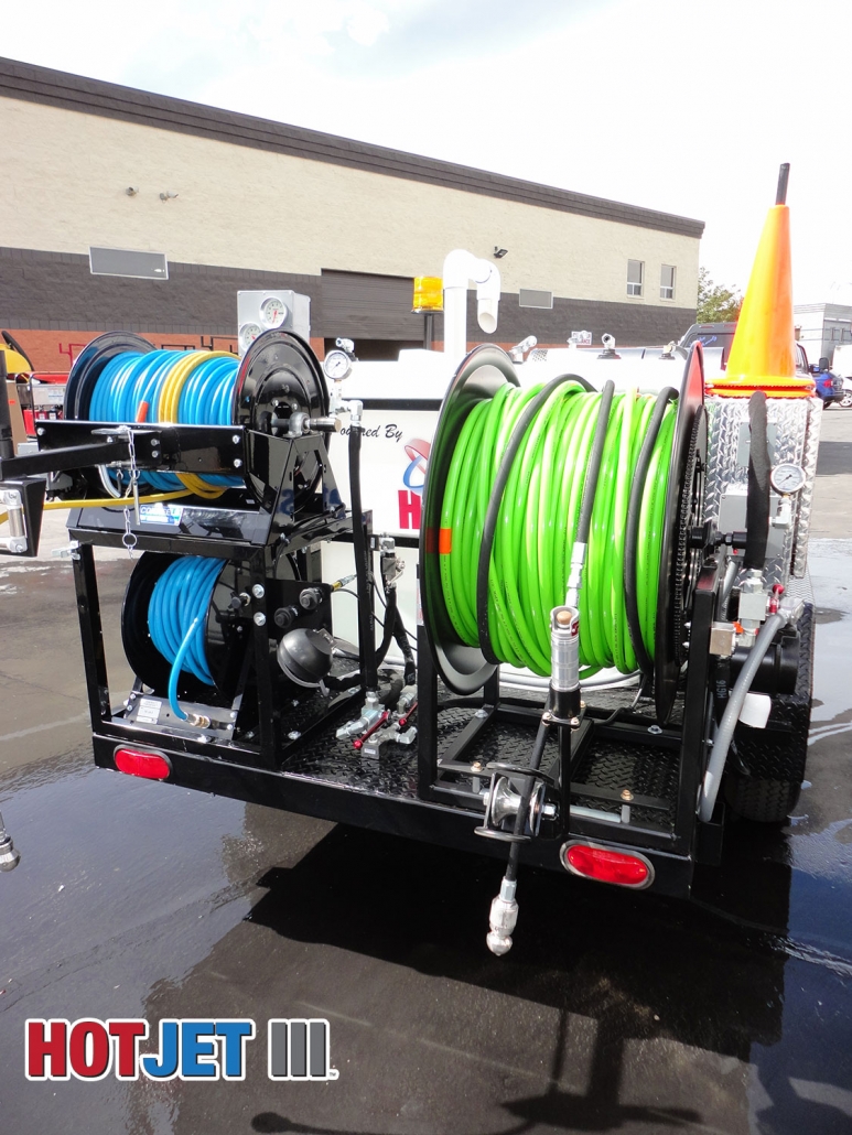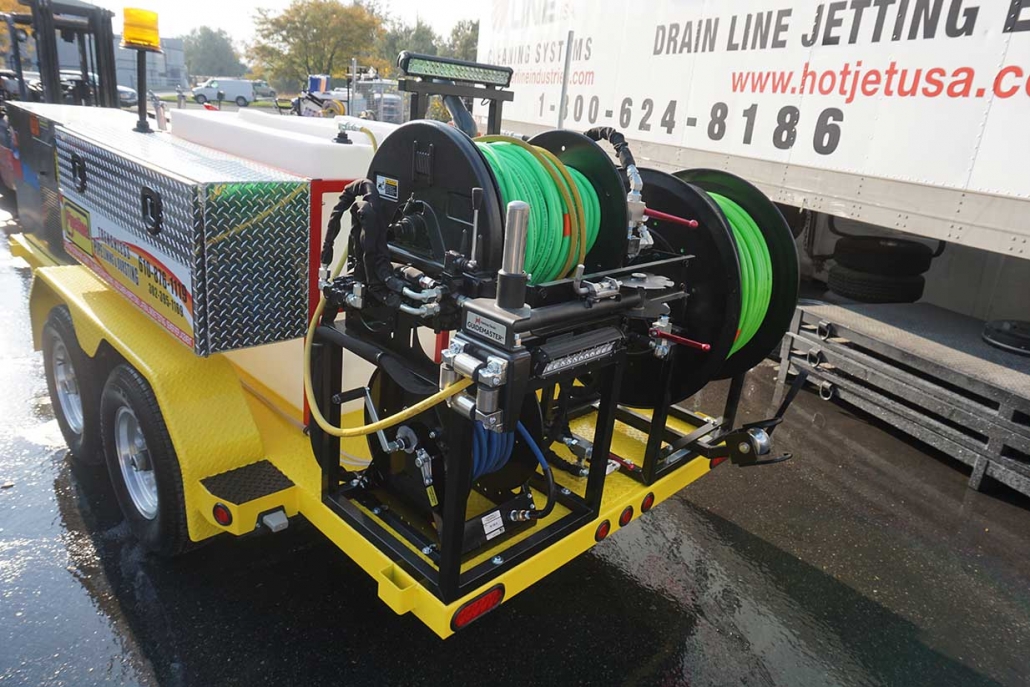 Trailer Mounted Hot Water Sewer & Drain Line Jetter with Hydraulic Reels
